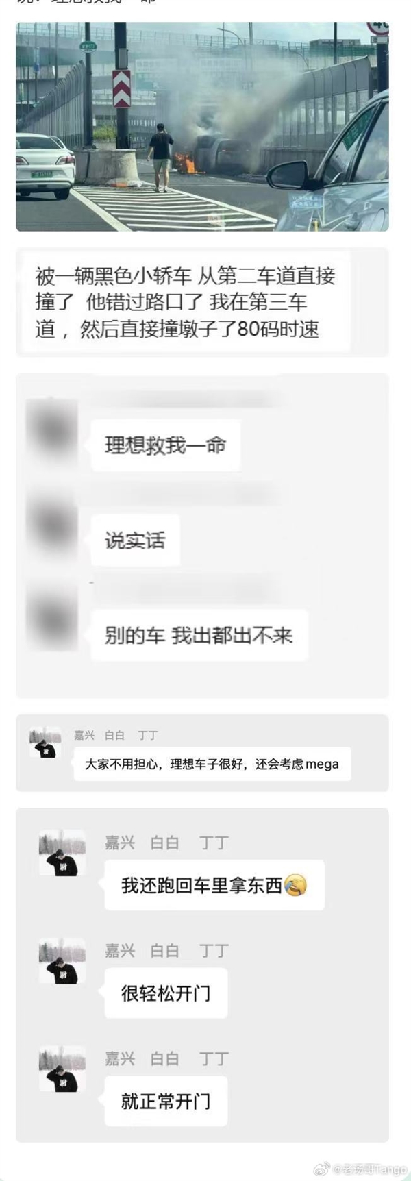 理想MEGA遭撞后起火燃烧 车主称安全还会买!高管:感谢认可 !