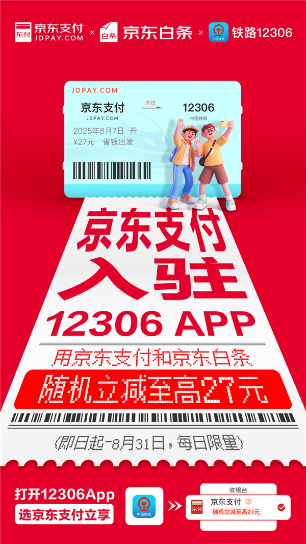 8月7日消息,今日,京东支付宣布,京东支付/京东白条入驻铁路12306。